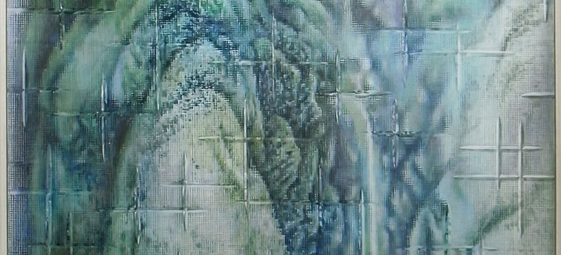 我以窗花玻璃作為一種攝影鏡頭的概念在現實中取樣,穿梭在住宅巷弄之中,偶然瞥見某戶人家的窗戶,窗口不經意的擺設或是恰到好處的光線映照,提供了我許多創作上的靈感與想像。透過窗花玻璃透光的物理特性,使所描繪物與背景失焦模糊來發展我的繪畫語言。